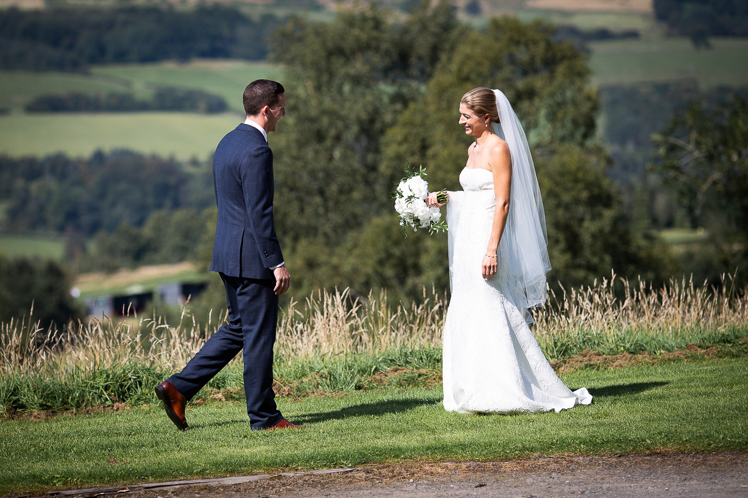 Some moments on a wedding day are loud and full of celebration. Others are quiet, emotional and deeply personal. Jenny and Jon chose to begin their wedding day with a first look at a viewpoint close to Crieff Hydro Hotel and it was one of the most beautiful, genuine moments of their entire day.