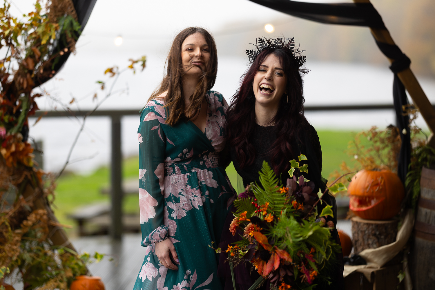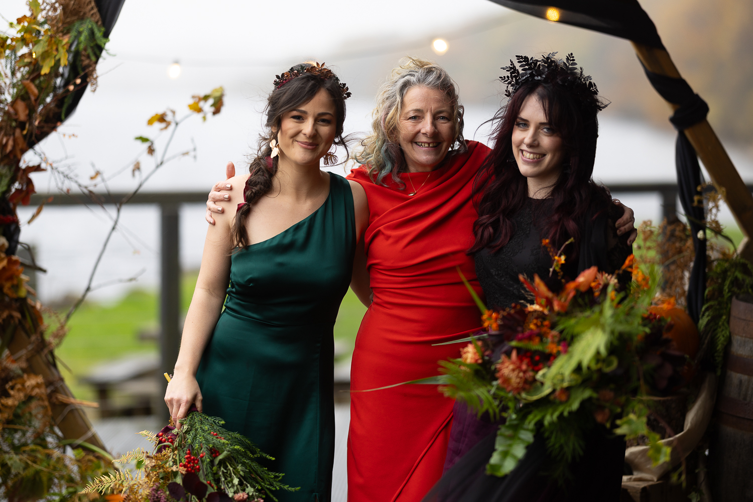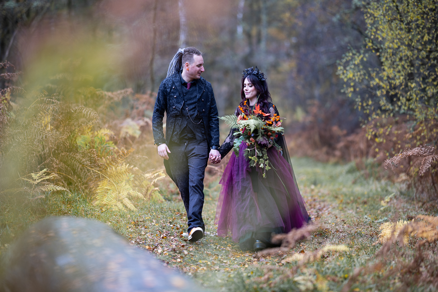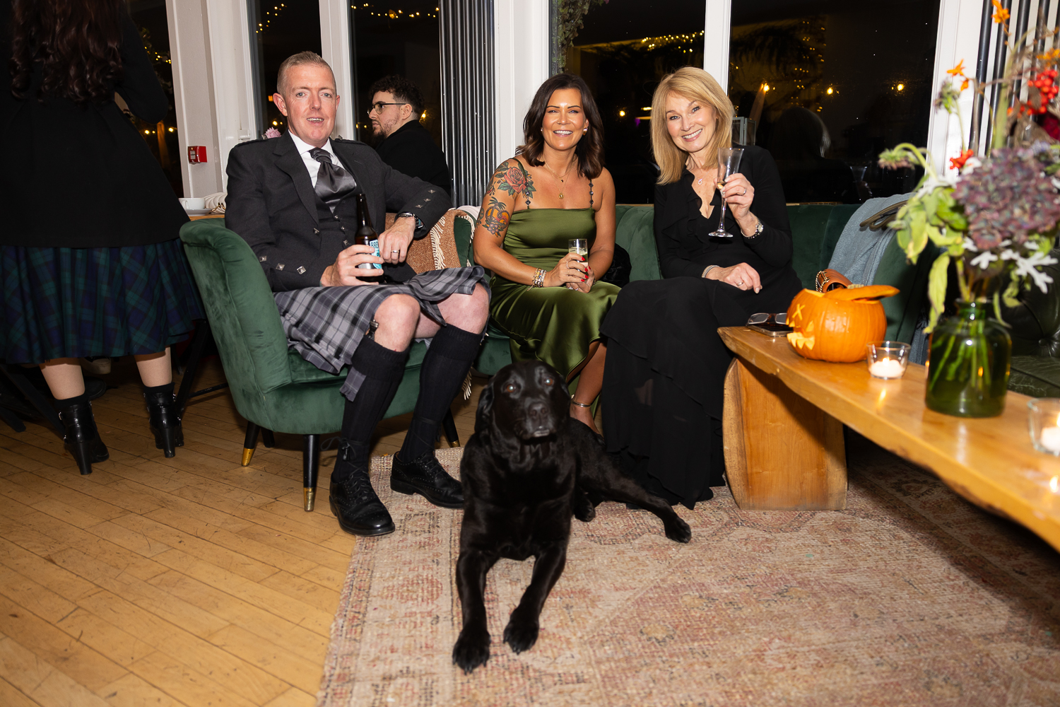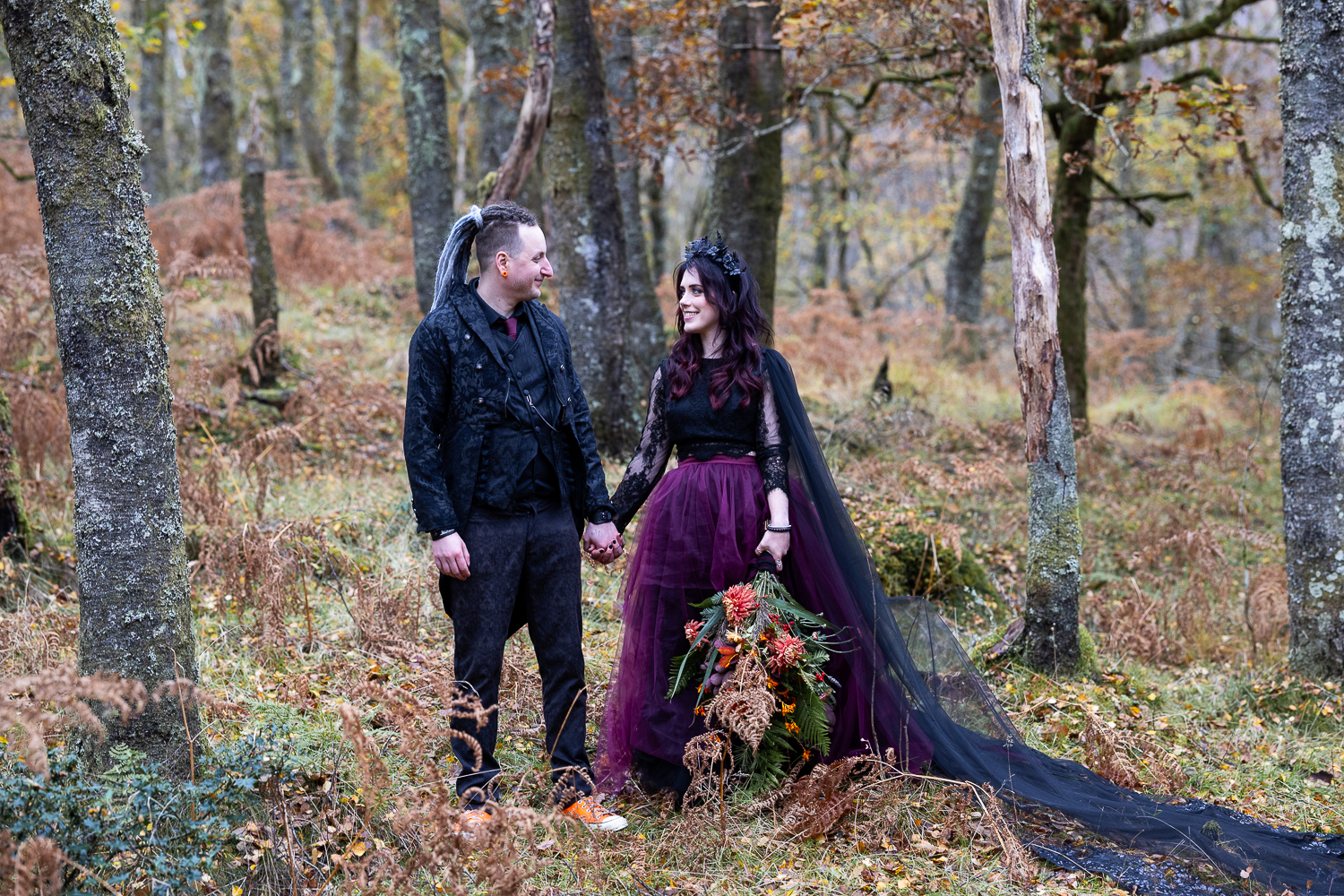M & T’s day was the perfect example of why couples choose Venachar Lochside in autumn. Lochside vows, seasonal styling with pumpkin details and quiet woodland portraits created a wedding gallery full of depth, texture and story. From a quiet autumn ceremony, walking the dogs in the woodland to full-volume evening celebrations, the day had everything.