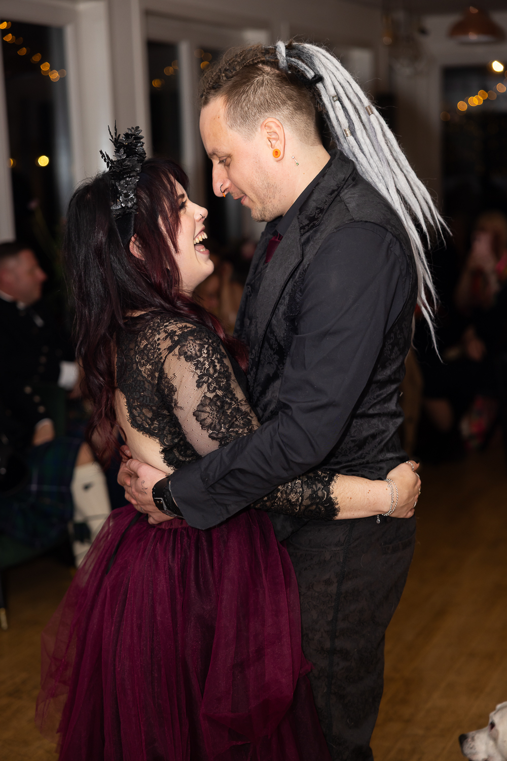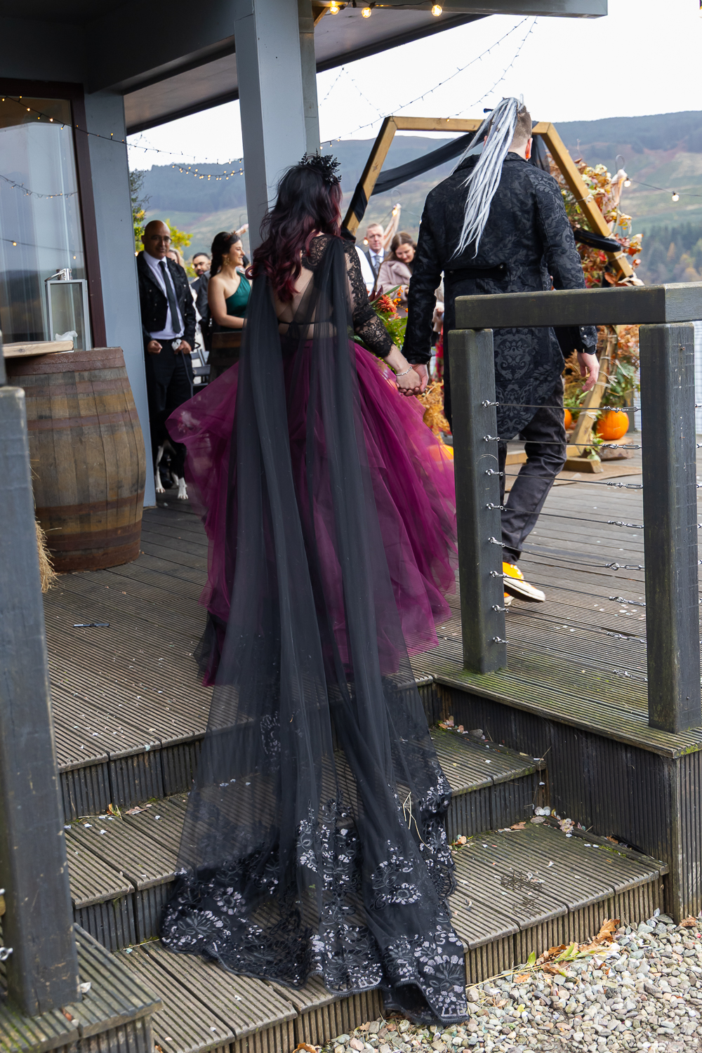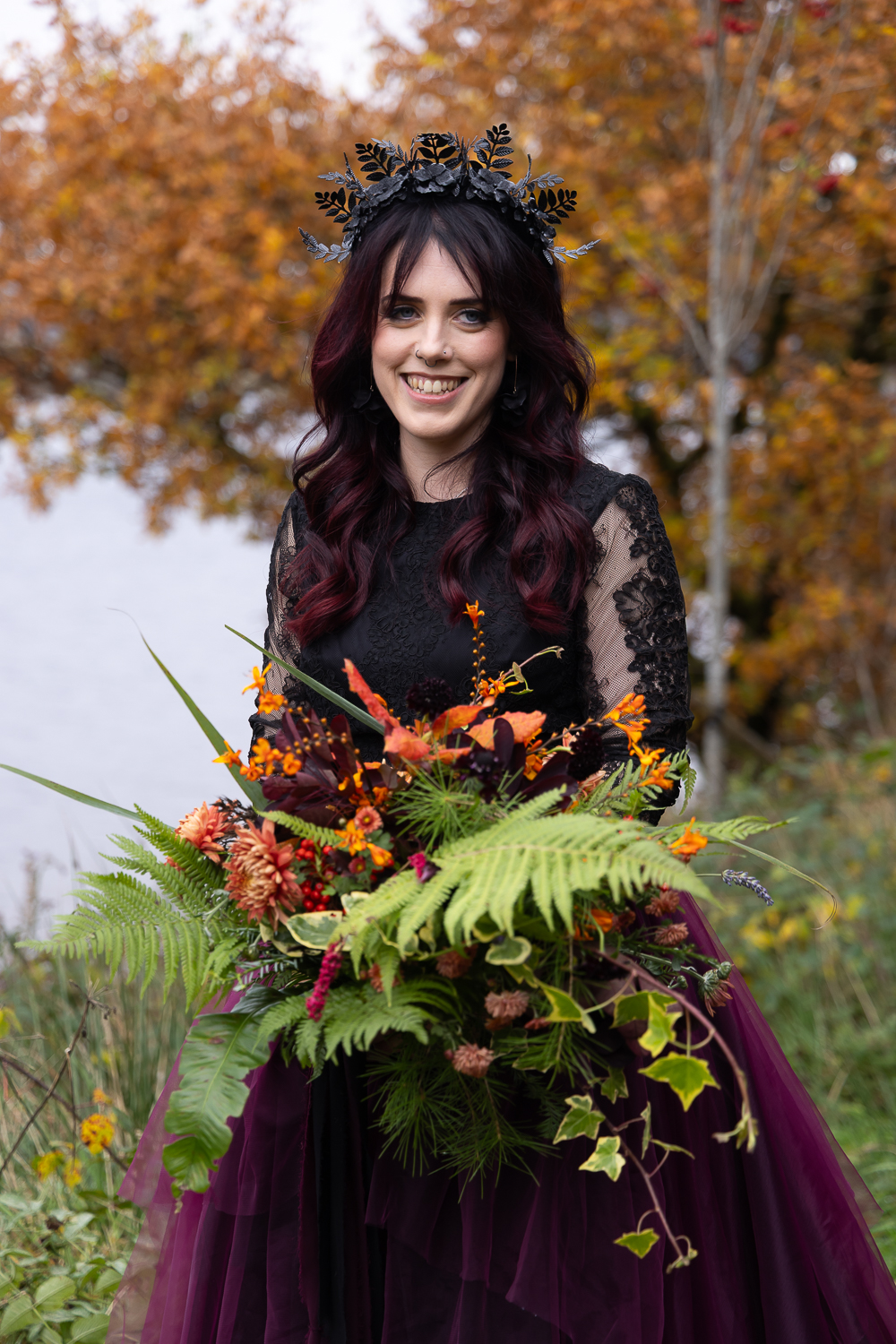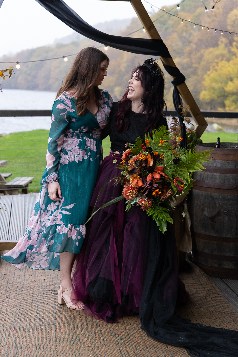 M & T’s day was the perfect example of why couples choose Venachar Lochside in autumn. Lochside vows, seasonal styling with pumpkin details and quiet woodland portraits created a wedding gallery full of depth, texture and story. From a quiet autumn ceremony, walking the dogs in the woodland to full-volume evening celebrations, the day had everything.