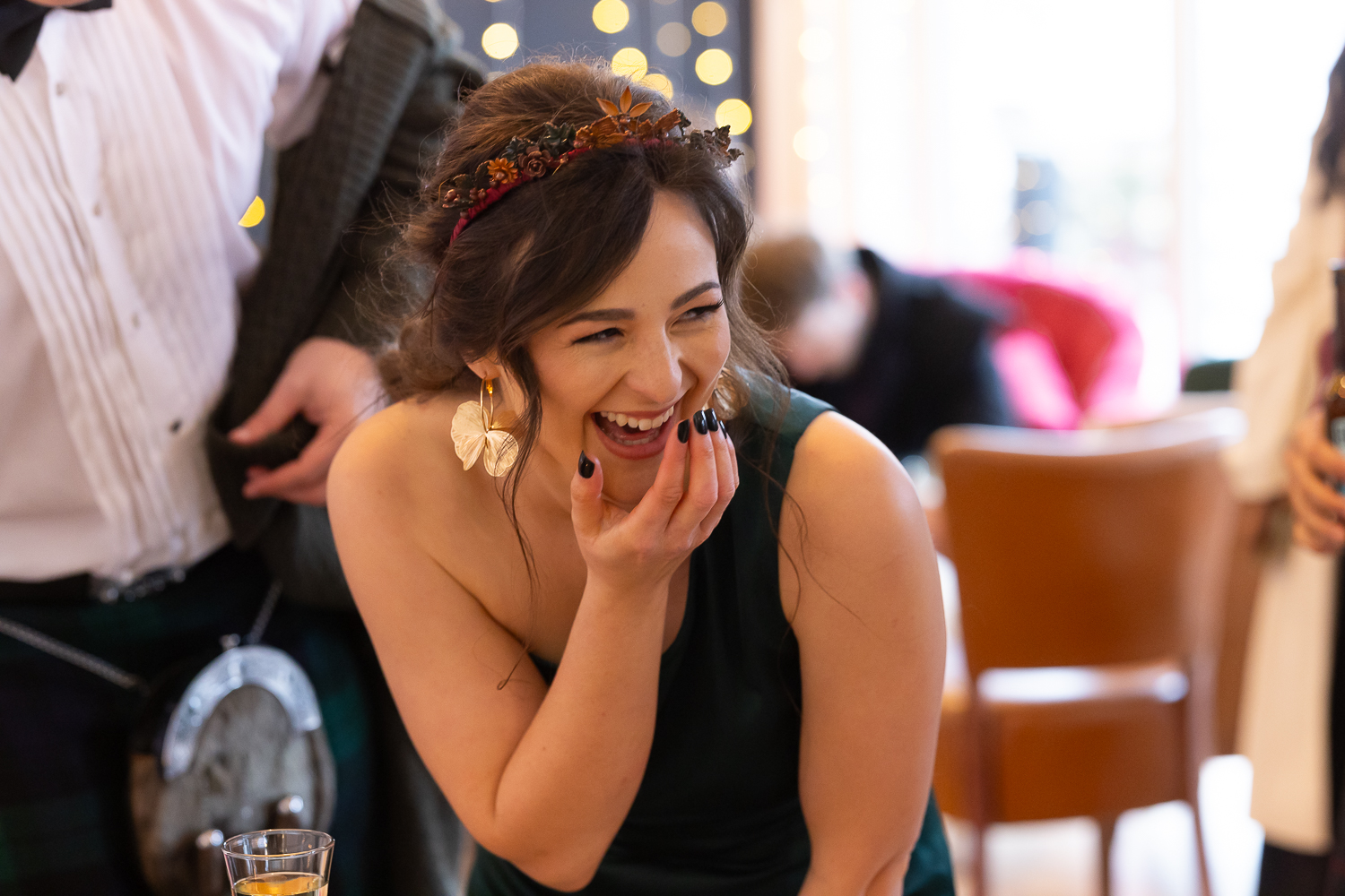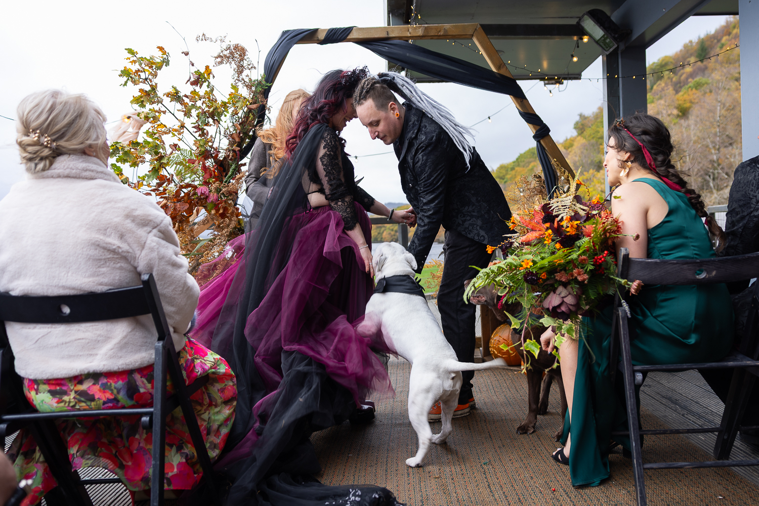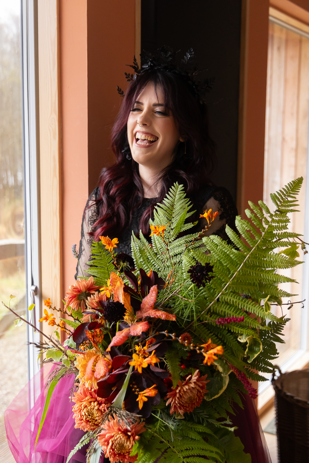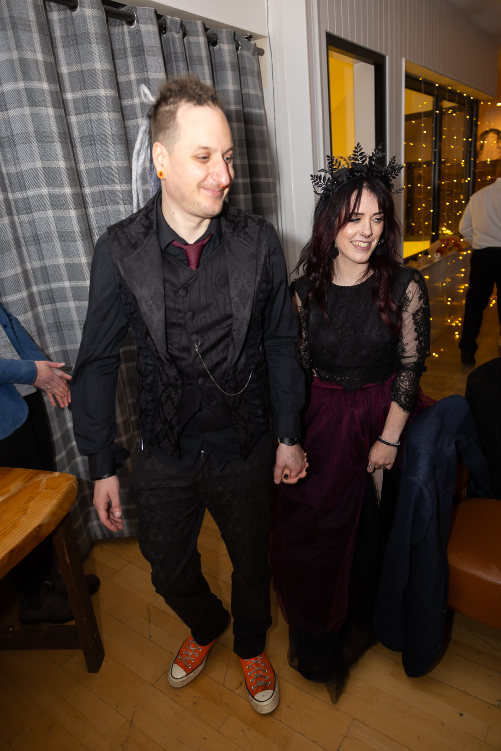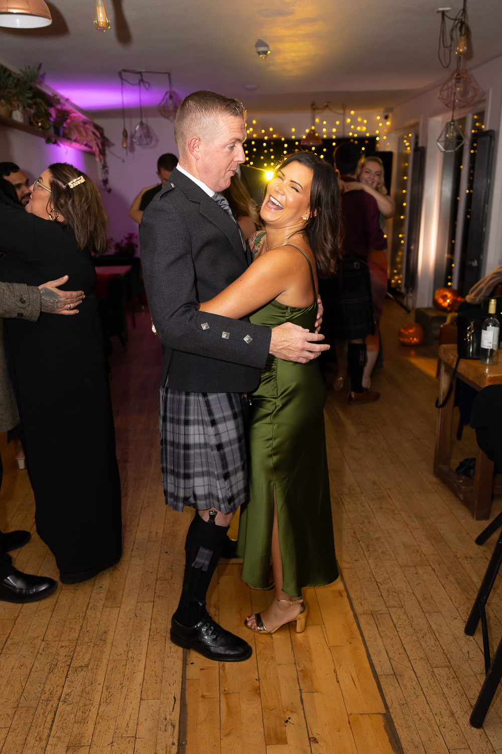 M & T’s day was the perfect example of why couples choose Venachar Lochside in autumn. Lochside vows, seasonal styling with pumpkin details and quiet woodland portraits created a wedding gallery full of depth, texture and story. From a quiet autumn ceremony, walking the dogs in the woodland to full-volume evening celebrations, the day had everything.