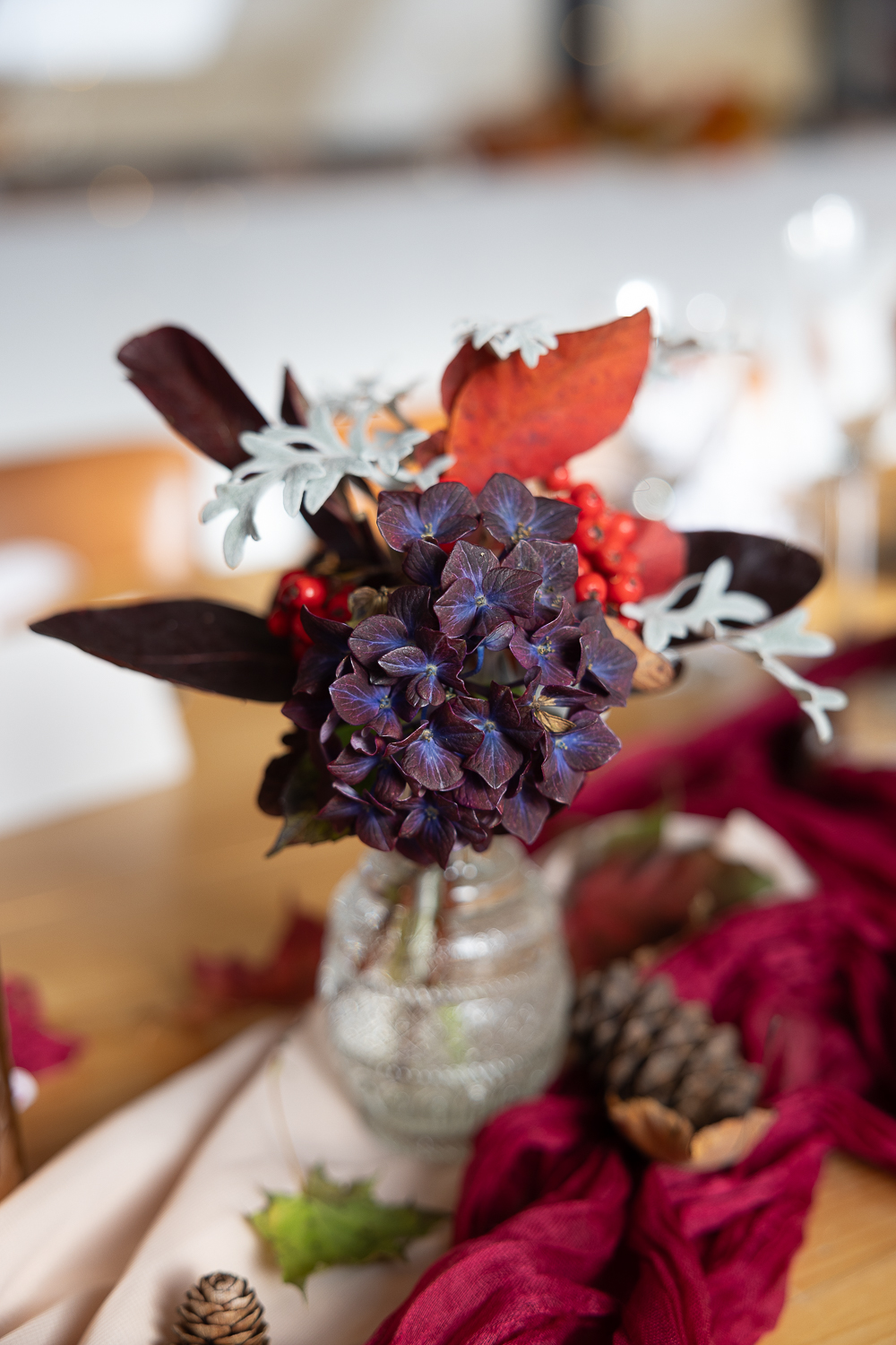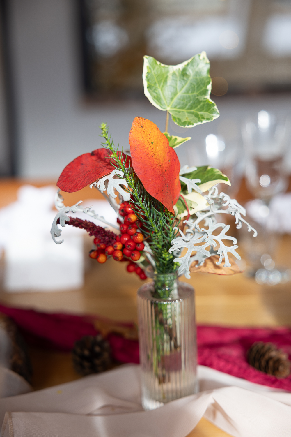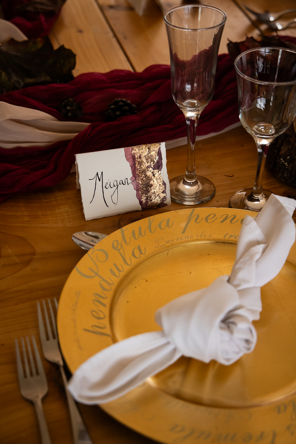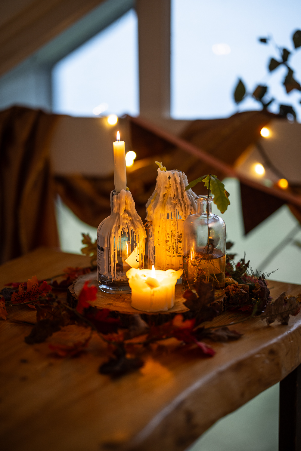 The couple chose to lean fully into the season, building a warm, rustic aesthetic that complemented the landscape rather than competing with it.