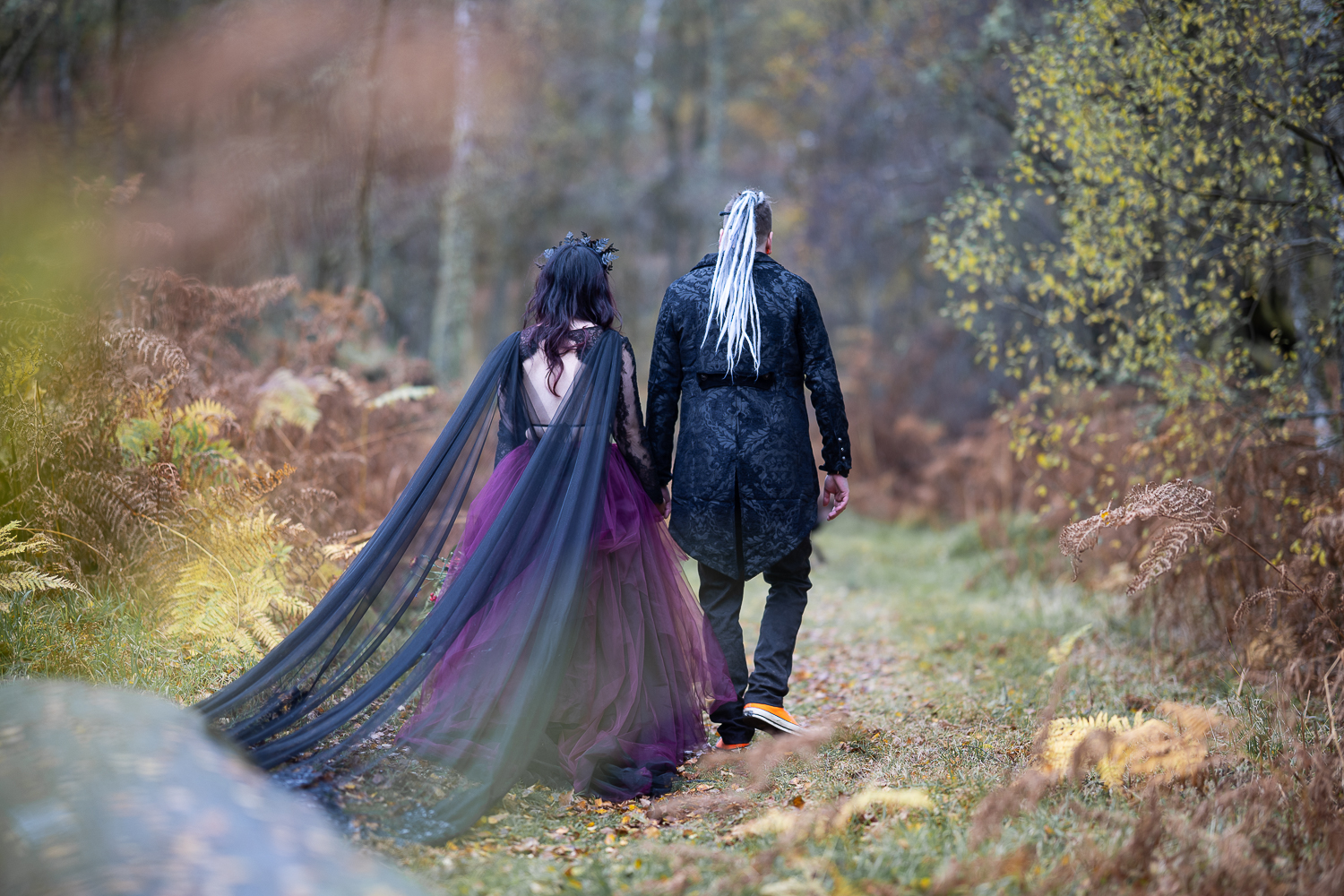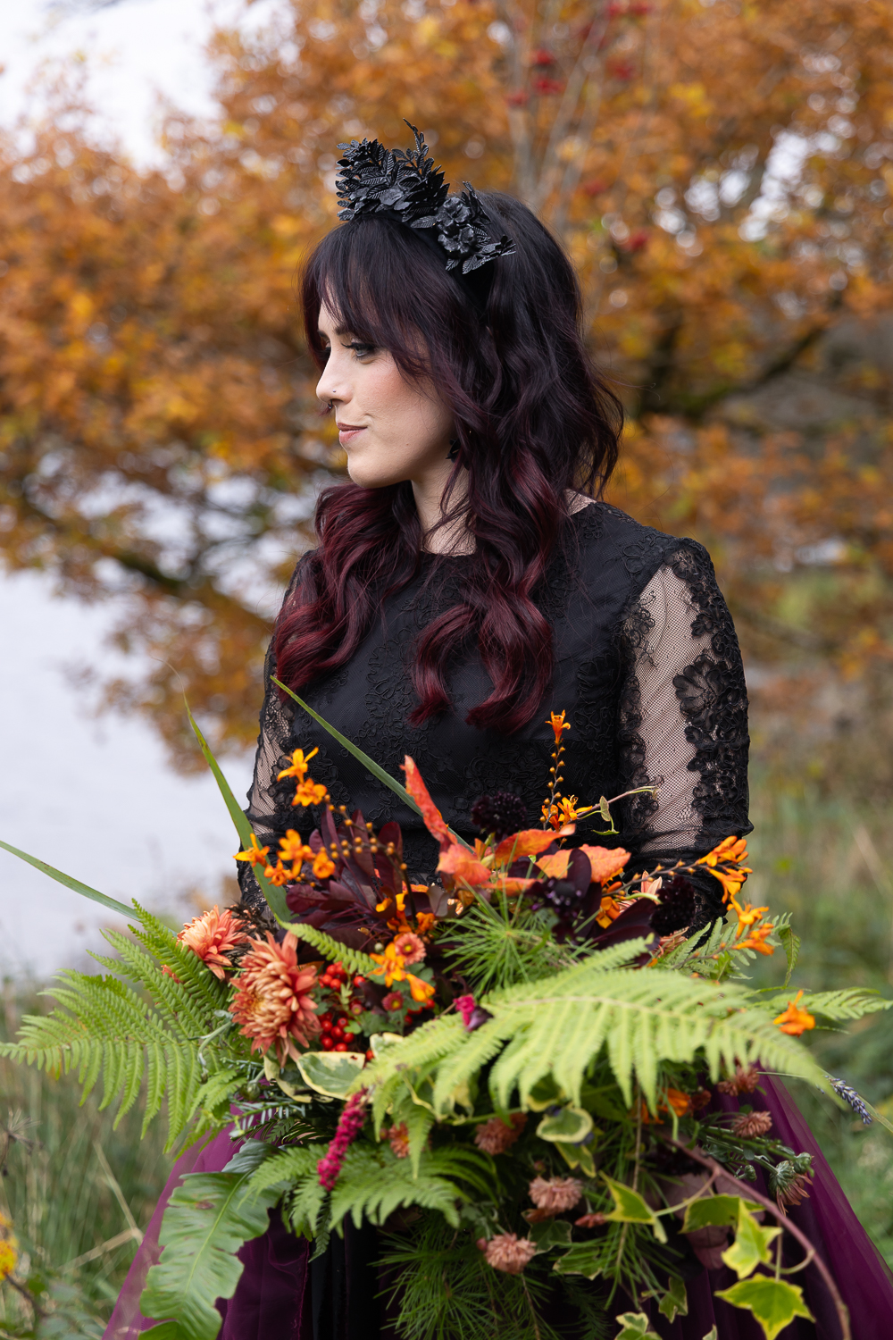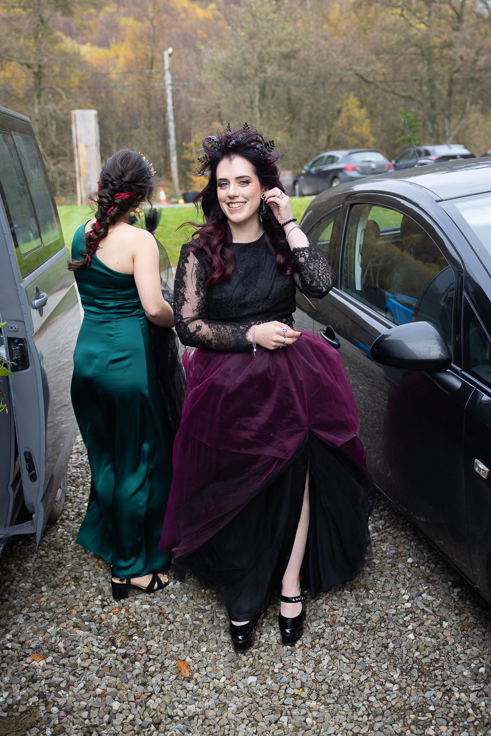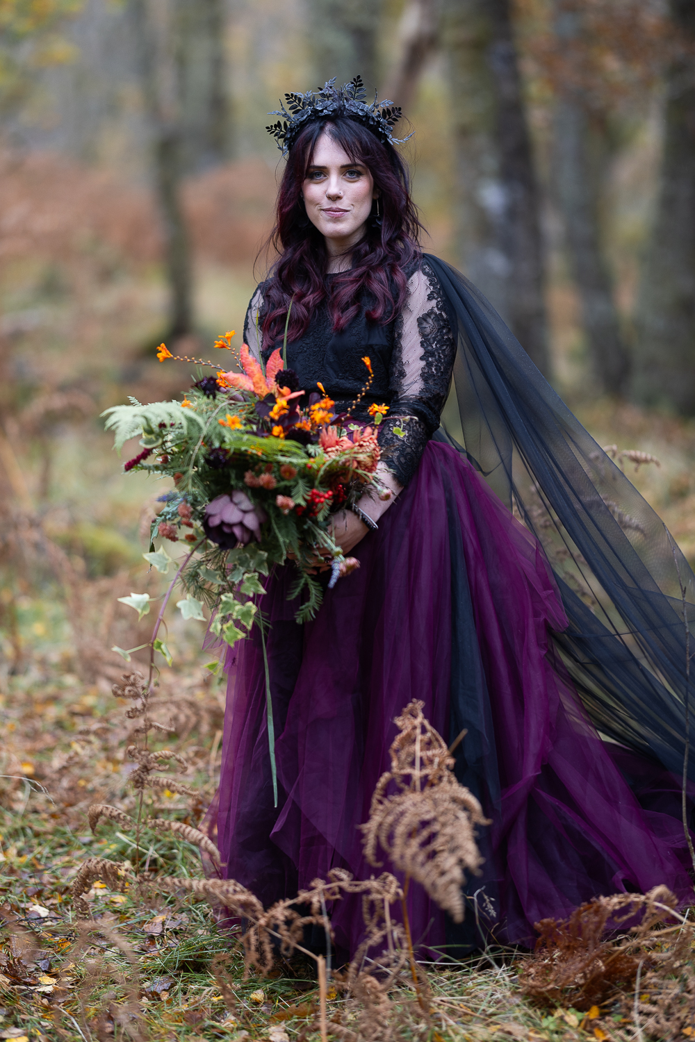 The mix of textures of rough bark, soft moss, fallen leaves and flowing fabric  created depth and warmth in every frame. The contrast between the open lochside ceremony and the enclosed woodland portraits gave their gallery a complete storytelling arc.