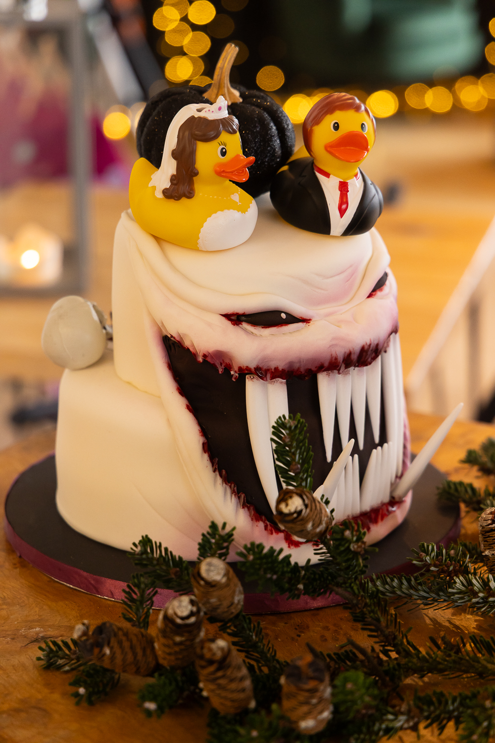 They incorporated subtle pumpkin details throughout the venue — nothing overly themed, just elegant seasonal touches: